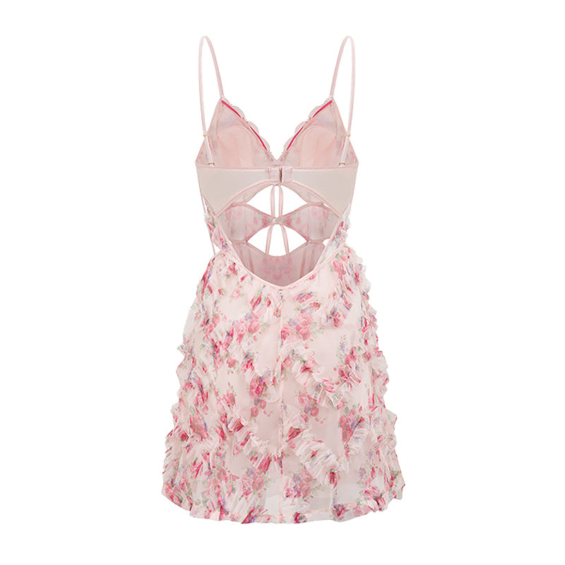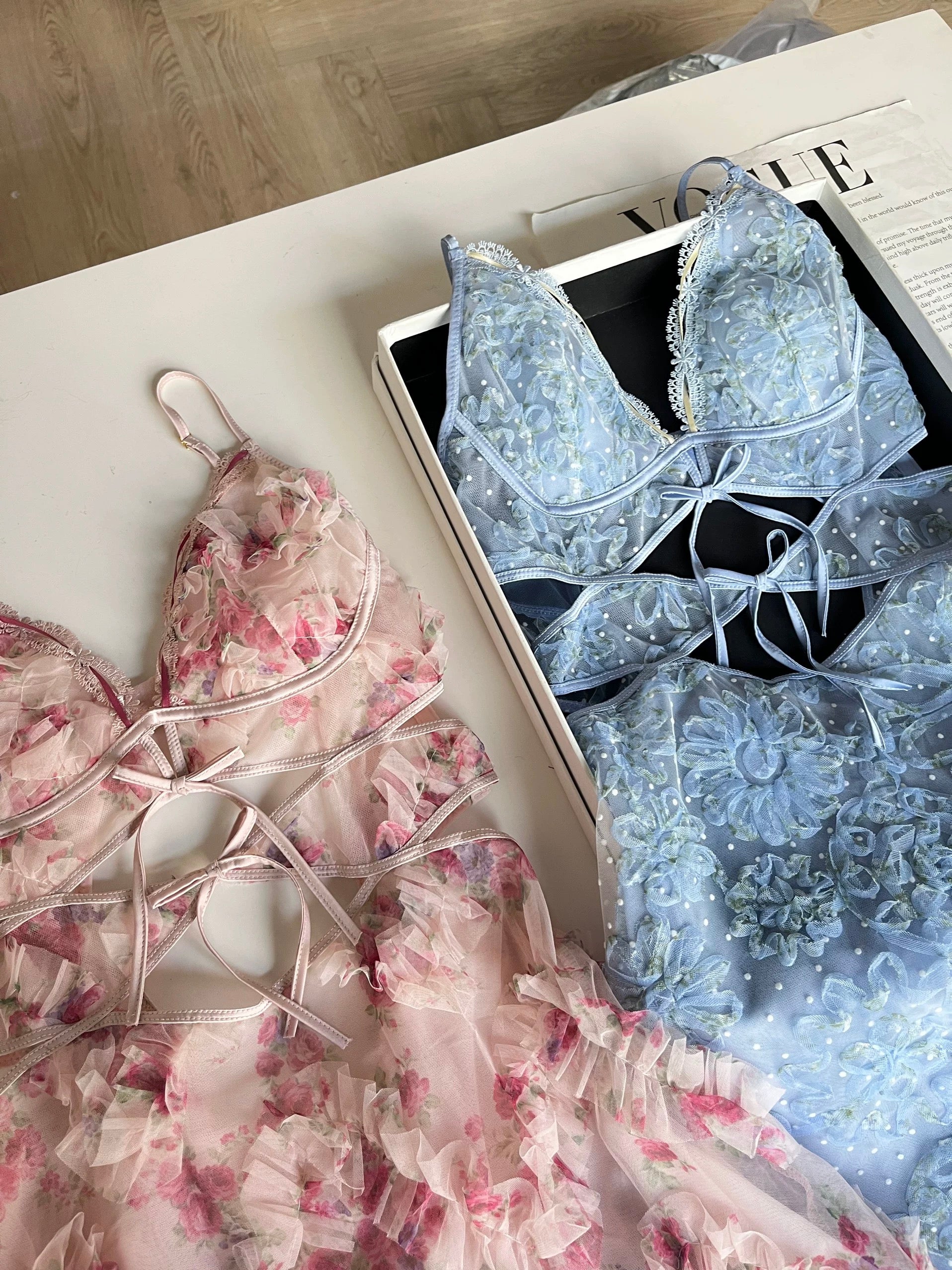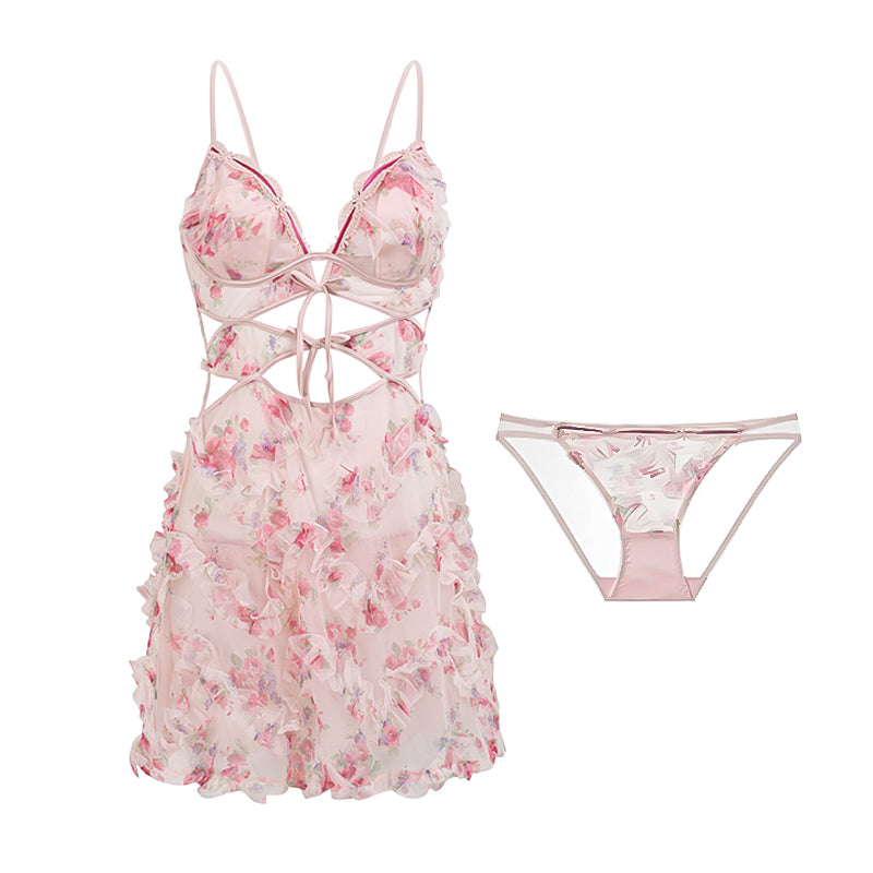This French-inspired camisole dress features intricate rose details and a flattering lace-up bodice that enhances your natural silhouette. With soft padding and no underwire, it offers gentle support and comfort. The matching panties complete the look, making it an elegant yet seductive addition to your wardrobe—ideal for intimate nights or styled as part of a romantic outfit.